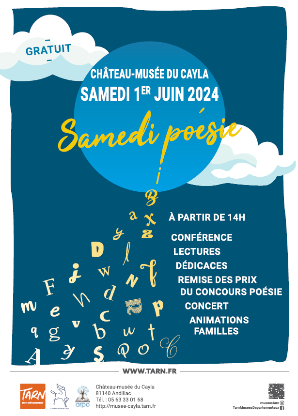 Pour la 7e année, le Département du Tarn vous invite à la manifestation "Samedi poésie" ; une après-midi pour découvrir des écritures poétiques contemporaines dans une ancienne maison d’écrivain devenu musée départemental, le Château-musée du Cayla (81140 Andillac). Cet évènement vient clôturer le concours de poésie dont la thématique 2025 s’est intéressée à l’eau : "Déborder".