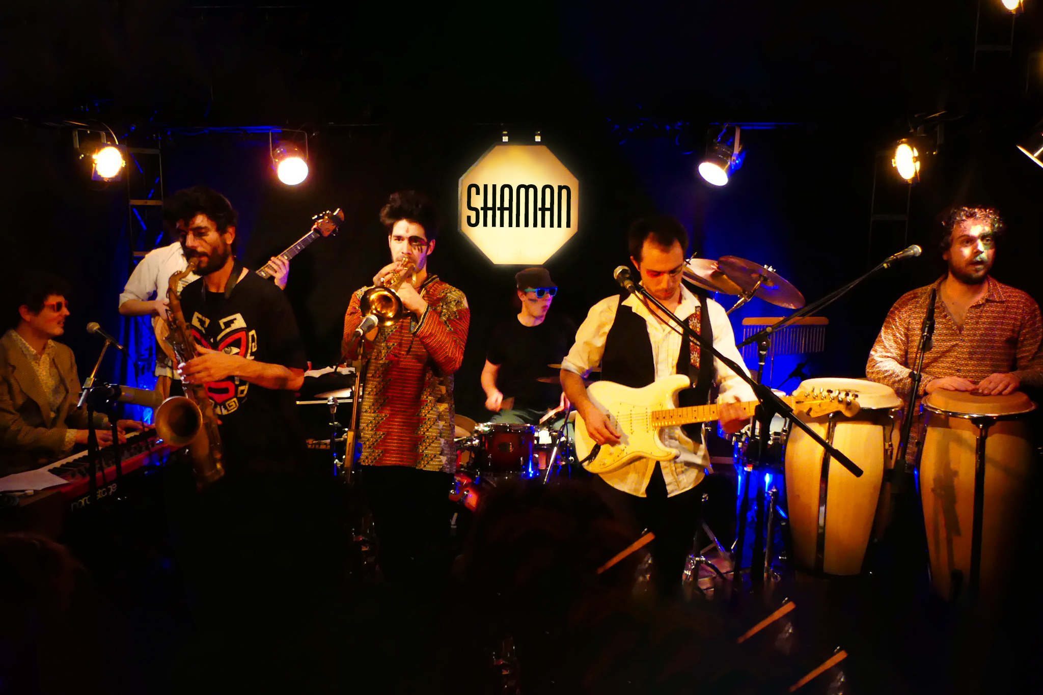 La bande de mercenaires jazz funk de Shaman n’aime rien tant que donner à entendre ce qui la fait vibrer ! En véritables musiciens dénicheurs de pépites musicales, ils ont extirpé des perles de Maceo Parker à Herbie Hancock, la funk des brésiliens de Saravah Soul, les infidélités hip-hop de Buckshot Lefonque et même la soul de Sly & The Family Stone. De quoi animer les soirées et laisser toute sa place au rythme, rien qu’au rythme !