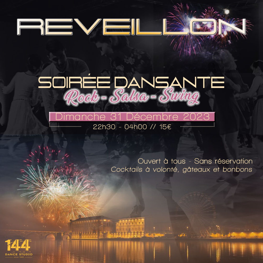 Réveillon essentiellement ROCK, SALSA, SWING avec quelques touches de musiques actuelles sur le coup des minuits et cotillons. Ouvert à tous sans réservation !
