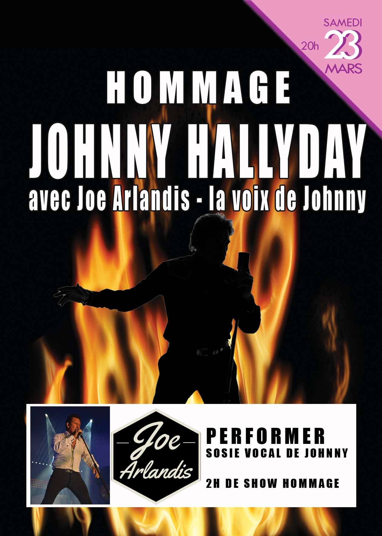 Une soirée hommage dédiée à Johnny hallyday, une des personnalités françaises la plus admirées. C’est Joe Arlandis, performer vocal, qui fera revivre la star internationale du rock’n roll le temps d’une soirée, au travers de l’interprétation des titres phares du chanteur. Sosie vocal numéro 1 de Johnny Hallyday, Joe Arlandis avait eu l’honneur de travailler avec la Star, notamment lors de son passage au Parc des Princes. Une soirée à ne manquer sous aucun prétexte pour les fans du chanteur !