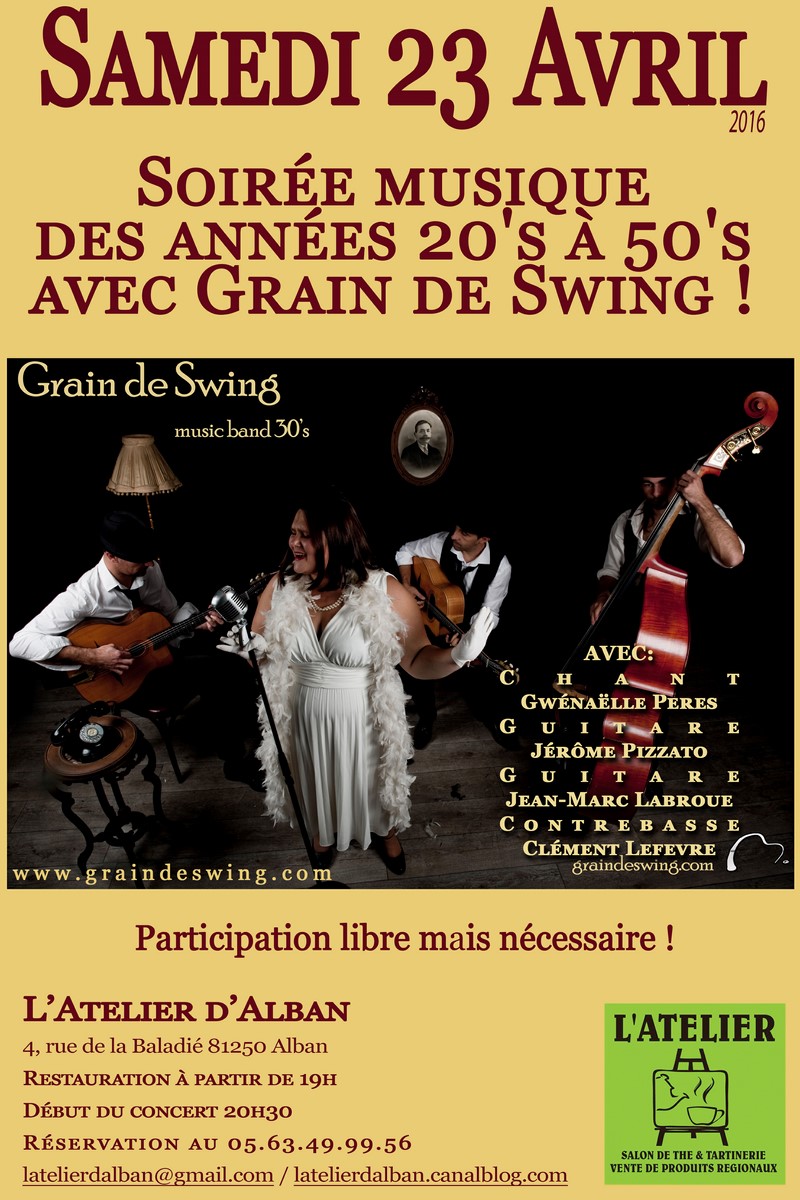 Soirée musique des années 20’s à 50’s avec Grain de Swing !