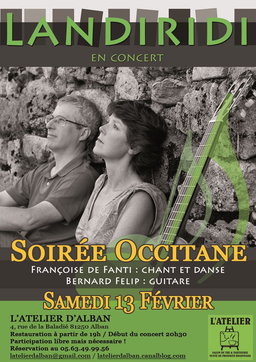 Réservation au 05.63.49.99.56 ou latelierdalban@gmail.com