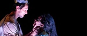 Narbo Via et la Scène Nationale Théâtre+Cinémas’associent pour proposer une histoire mythique revisitée entre rock et science-fiction. La scène tout en longueur prend place dans le hall du musée Narbo Via, avec le public positionné de part et d’autre. Deux cadres métalliques, quelques guirlandes lumineuses et une installation sonore modèlent l’espace. Le mythe prend forme sur un tapis bleu, la mer sur laquelle nous allons revivre quelques fameuses péripéties d’Ulysse. Les personnages actionnent eux-mêmes les projecteurs et jouent en live une musique rock, inscrivant le récit dans une esthétique de science-fiction. Pour faire face au combat, le sabre laser et l’humour sont de rigueur. Cette réinterprétation de L’Odyssée d’Homère nous permet de naviguer entre un père héroïque et son fils. Quand Ulysse affronte Éole ou le Cyclope, Télémaque n’est jamais bien loin. Il l’appelle, l’interpelle, lui somme de revenir. C’est à travers son point de vue que l’on parcourt l’histoire, celle d’un fils qui doit grandir avec un père absent. Portée par la promesse d’une réconciliation, cette traversée aux