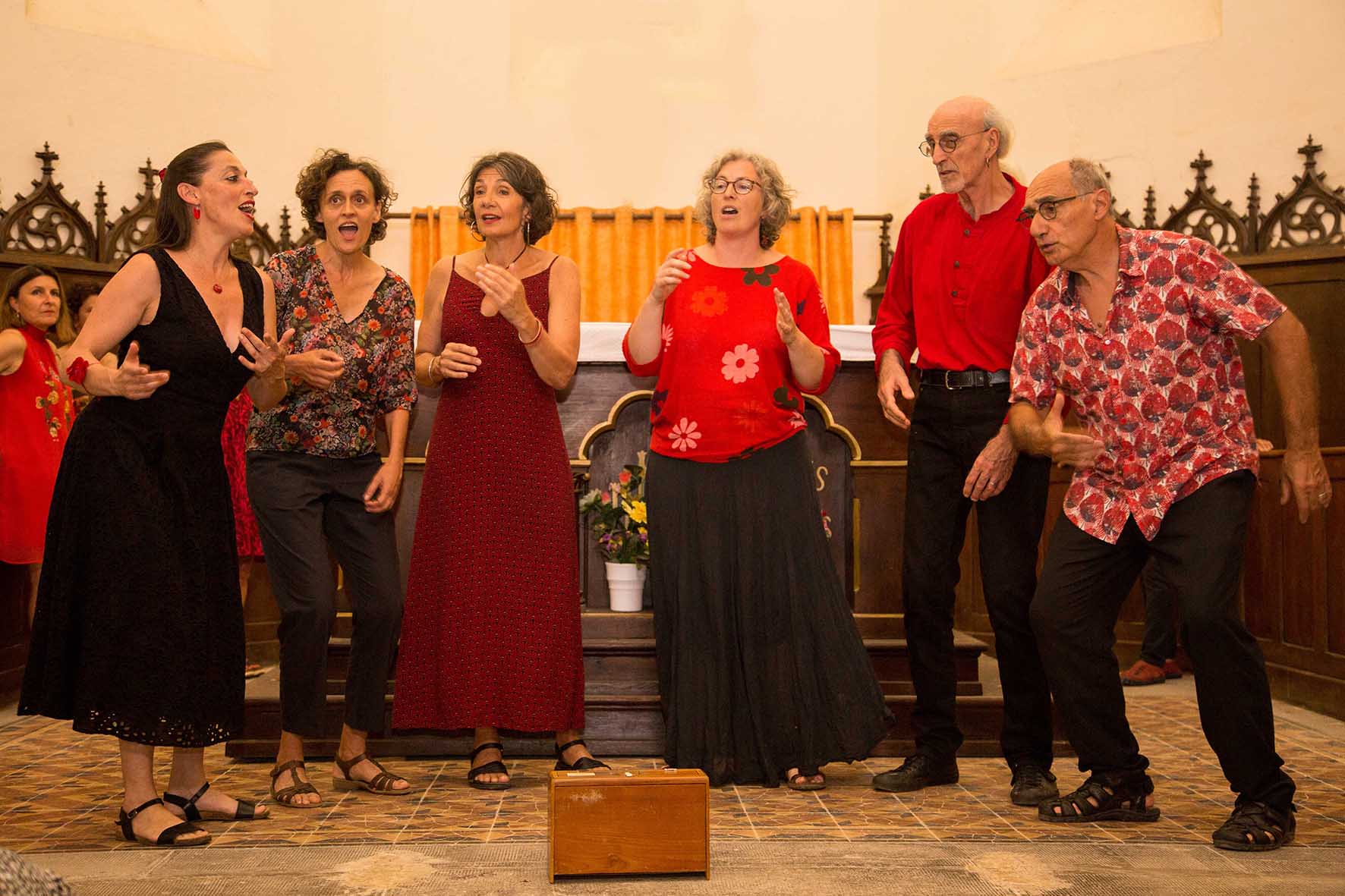 Les séances sont toniques et proposent des exercices impliquant mouvements du corps et explorations vocales.