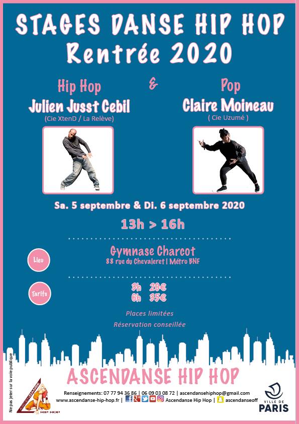 Les stages de rentrée 2020 d’AscEnDanse Hip Hop seront consacrés au POP et au HIP HOP avec Claire Moineau (Cie Uzumé) et Julien Jusst Cebil (Cie XtenD / La Relève)