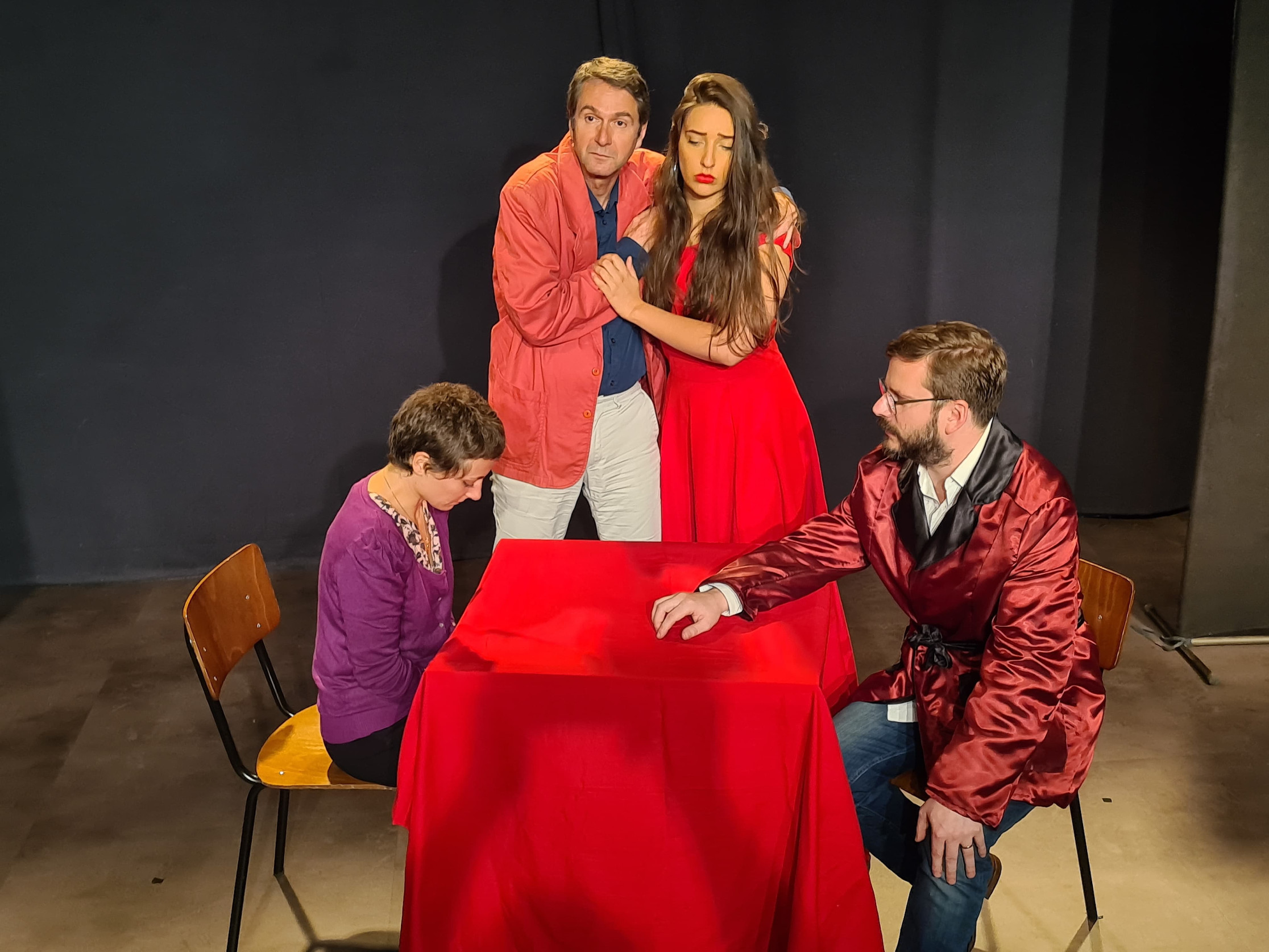 Une adaptation de huit bande-dessinées du célèbre Christian Binet. Un portrait au vitriol de ces êtres que nous qualifions un peu facilement de « français moyens » comme pour les amalgamer dans un unique bataillon de piètres individus dont nous aurions su éviter les travers. Le dessinateur et le spectacle nous invitent à l’humilité : quand nous rions d’eux, ne rions-nous pas aussi un peu de nous-mêmes ? « Tous les mardis c’est gratin d’aubergines » nous les présente en miroir déformant. Et il y a fort à parier que, dans le grotesque de leurs attitudes, nous discernions certains de nos défauts les plus inavouables.