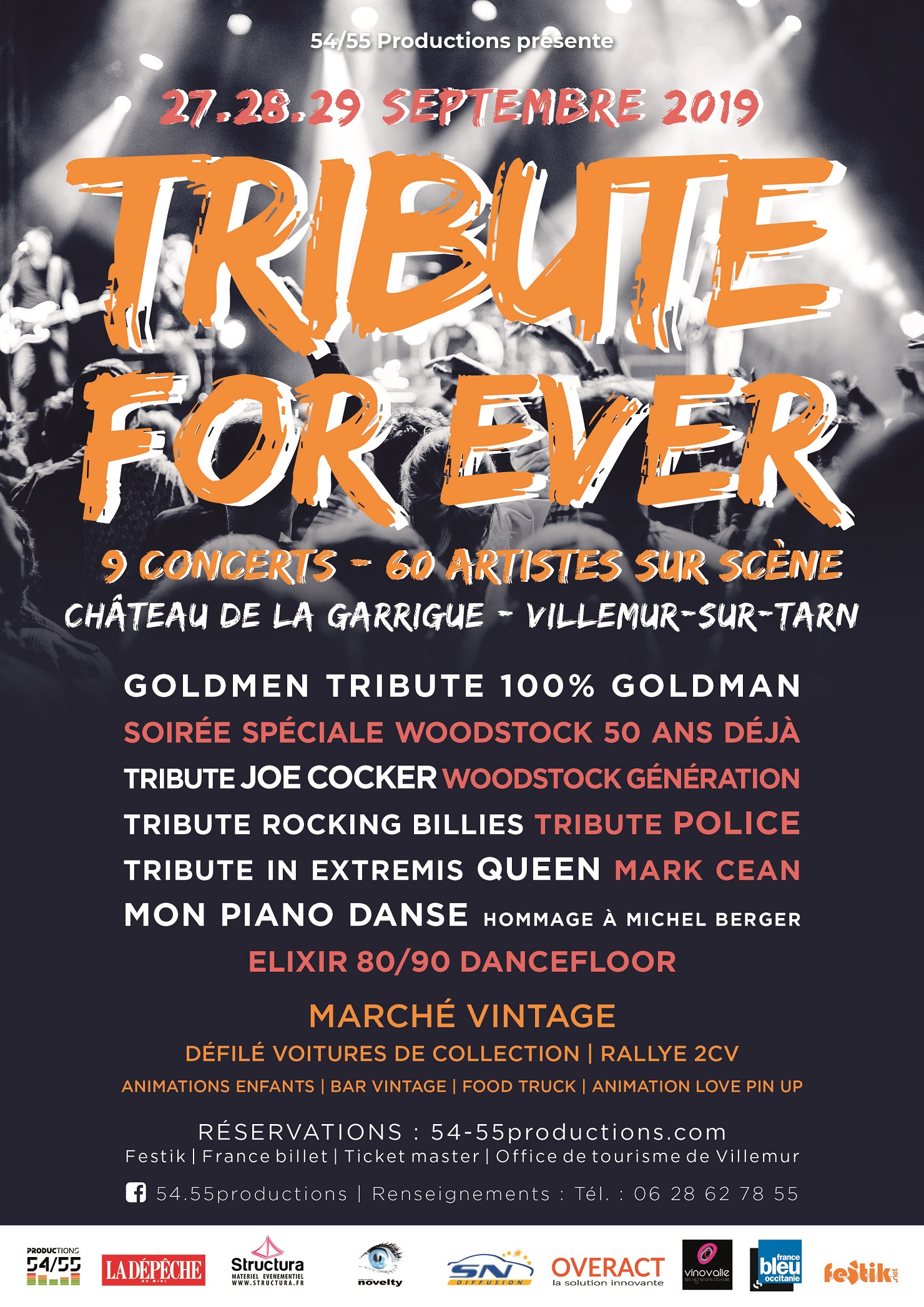 3 jours de concerts « Tribute for Ever ». Sont programmés : les tributes, Goldmen 100 % Goldman (date unique dans la région), Hommage à Michel Berger, Mark Cean, Joe Cocker, Police, Rocking Billies, In Extremis Queen…