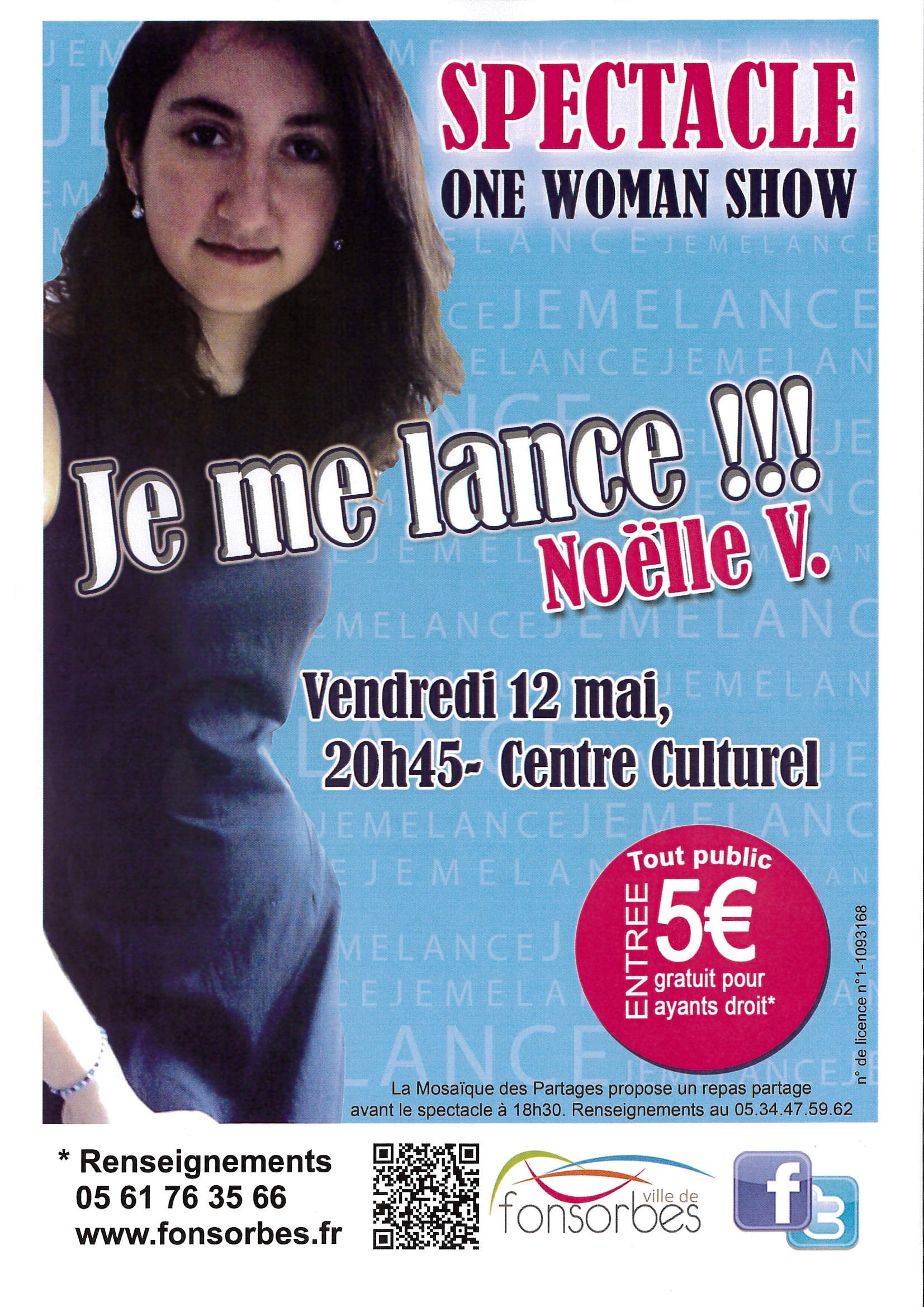 Après Avignon, Bordeaux, Toulouse, Nantes, Angers, Paris, Noëlle V. vient présenter son spectacle humoristique. Cette artiste de talent vient incarner divers personnages, tour à tour sketches ou « stand up », sur des thèmes qui touchent tout le monde : le chômage, la téléprospection, la vie au collège, les paroles de chansons… - un brin féministe... ou pas ! Rires garantis ! Elle vous expliquera comment elle changera le monde quand elle sera déesse...Bref, un spectacle qui ravira le public, sur tous les petits travers de la vie et des femmes...