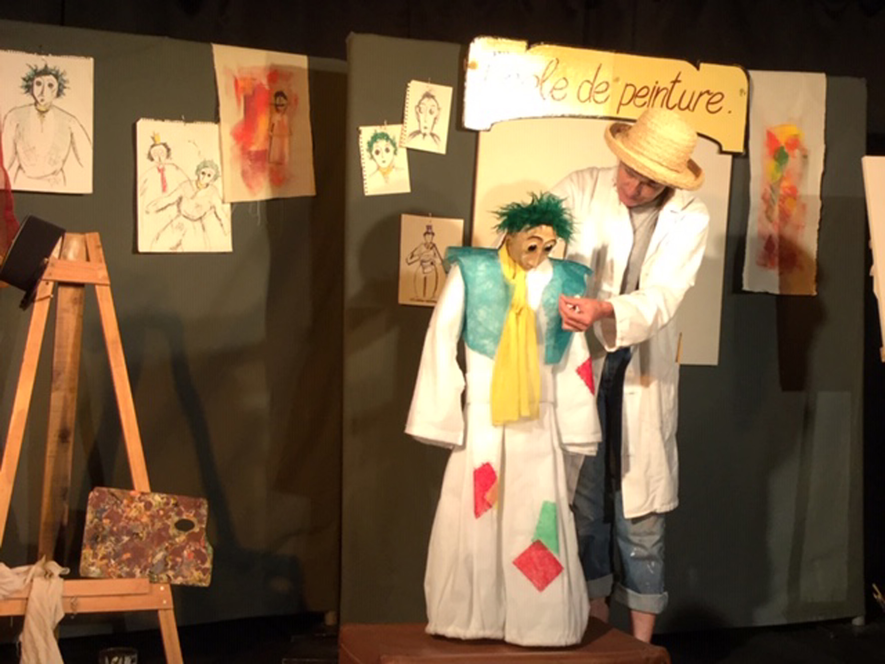 Grandes marionnettes portées, magie et humour sont au menu de ce spectacle de marionnettes ou la poésie rivalise avec l’humour.