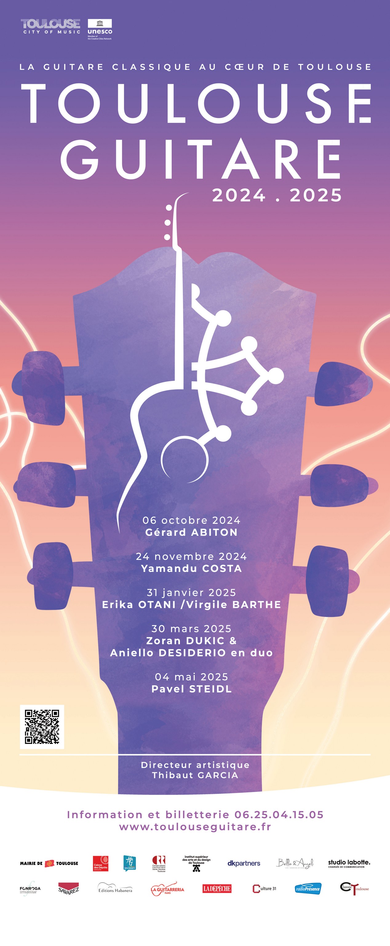 L’association Toulouse Guitare est heureuse de vous retrouver pour la saison 2024.2025, placée sous le signe de formidables découvertes. Cette saison vous étonnera par sa diversité et ses voyages dans le temps et autour du monde. Des concerts hauts en couleur vous attendent.