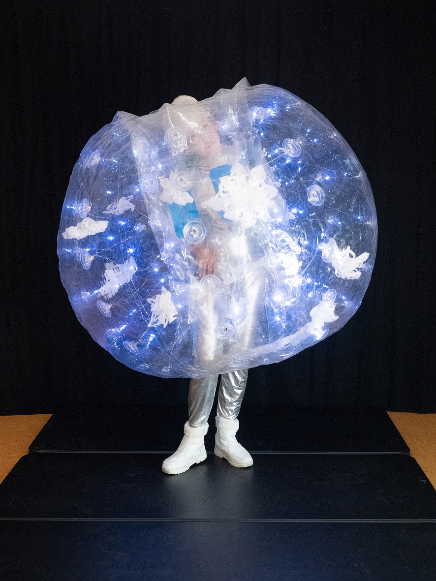 Une bulle givrée qui conte des histoires et chante des chansons d’hiver douces comme des flocons, pour tous les petits emmitouflés.