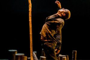 Un personnage-totem, des sons élémentaires de la Nature, une branche haubanée au sol et un corps humain à terre enseveli sous des décombres de bois. Par les moyens de l’acrobatie et de la manipulation d’objets, et par la recherche constante de l’équilibre, il nous faut édifier un monde nouveau, emprunter des chemins parfois absurdes, jouer et prendre des risques.