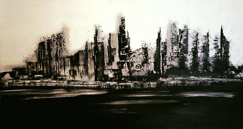 L’organisation de l’espace se fait et se défait ici à l’aide de noirs, de blancs, de couteaux, de pinceaux et d’acrylique pour des villes nouvelles, suggérées mais bien réelles...