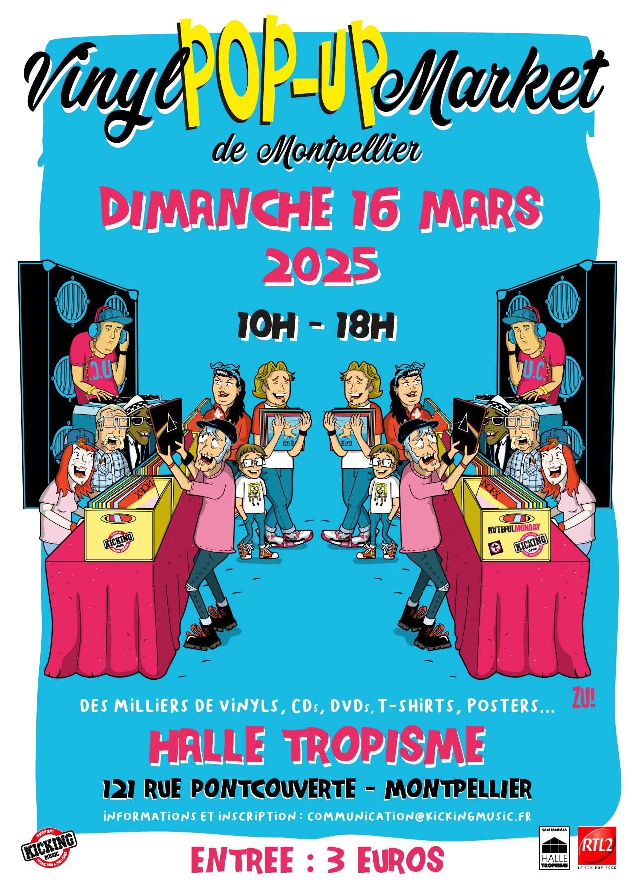 Dimanche 16 Mars, de 10h à 18h, la Halle Tropisme accueille le 9° Vinyl Pop-Up Market de Montpellier. Venez chiner parmi des dizaines de milliers de 45T, 33T, CD, DVD neufs et d’occasion, et autres accessoires et produits dérivés présentés par de nombreu.ses exposant.es, professionnel.les, particulier.es et associations.