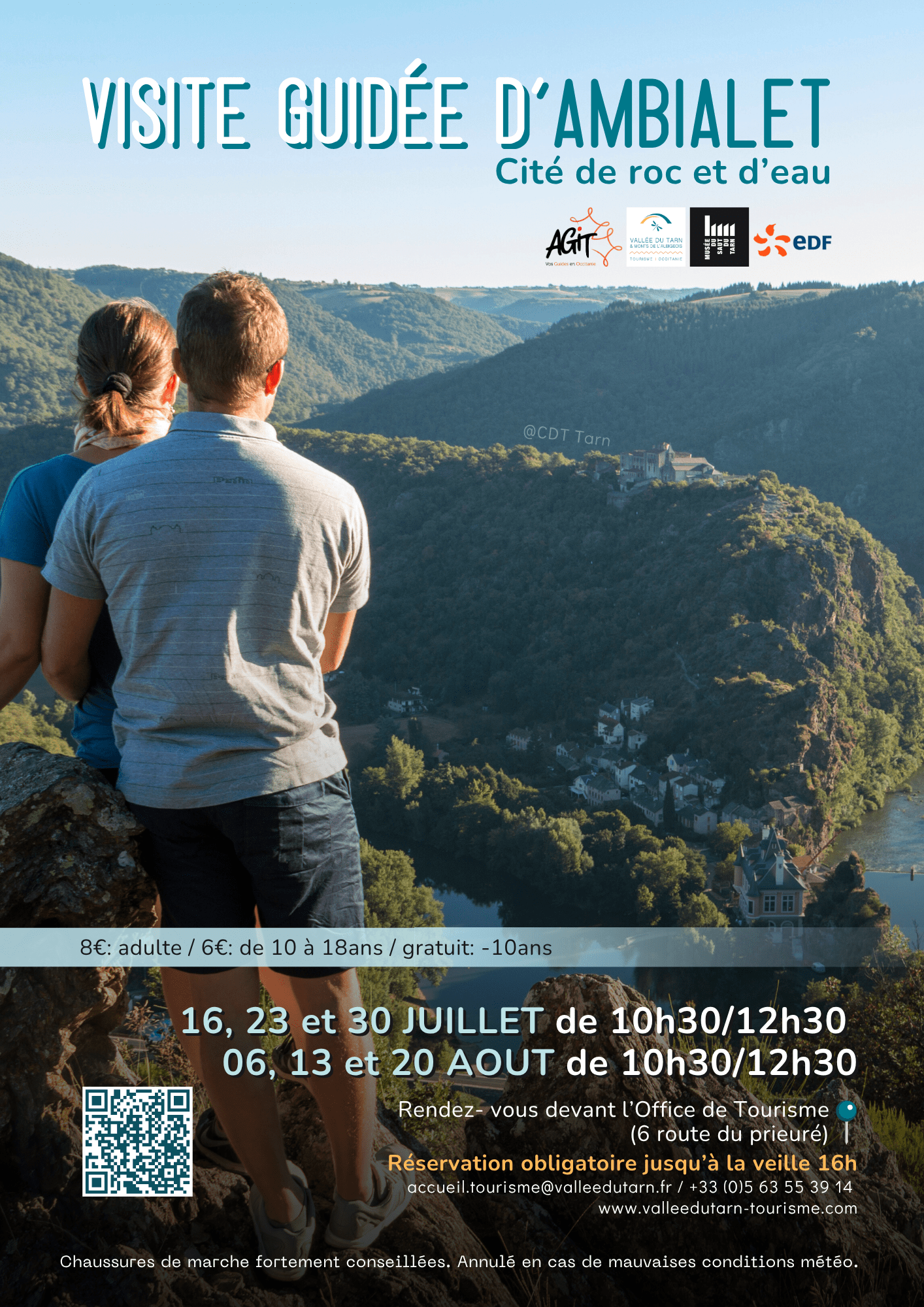 Arpentez la presqu’île d’Ambialet, site unique et insolite, lové dans un méandre du Tarn ! Cet ancien « castelas » médiéval, actuellement labellisé Petite cité de caractère, vaut vraiment le détour. Déambulez entre nature préservée et richesses patrimoniales : son chemin de croix, ses églises romanes Notre-Dame de l’Auder et Saint-Gilles, son barrage, son prieuré . Durée ≈2h