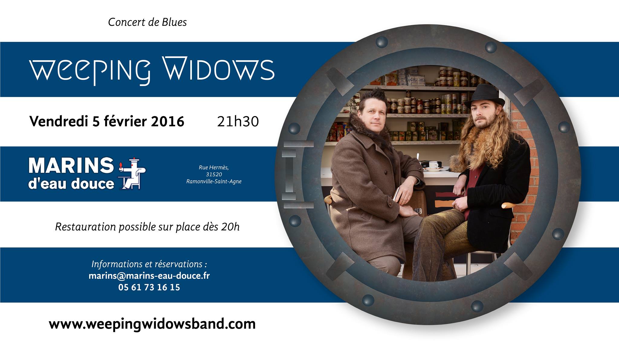Weeping Widows propose une musique innovante, énergique mélange de Blues traditionnel et de musique du monde (musique de l’est, musique arabo-andalouse, sud-américaine) très fortement remuant. La devise est de sortir des sentiers battus pour inventer autre chose, un espace d’expression entièrement original qui permette de développer un discours musical personnel, sans jamais perdre de vue le côté festif et communicatif des musiques qui les inspirent.