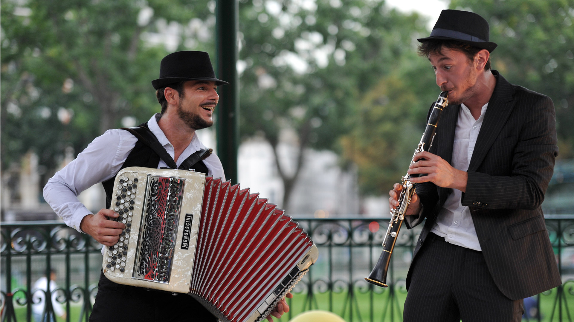Le duo Winner team, c’est une anche libre et une anche battante, un accordéoniste et un clarinettiste, associés à une circadienne. Ensemble, ils revisitent avec beaucoup d’inventivité les standards de la musique du XXe siècle pour créer un univers de voyage où se mêlent plusieurs répertoires : jazz, musique du monde, klezmer, swing, tango, chanson française, heavy métal… Avec leur look glamour des années 30, leur bonne humeur, leur énergie et beaucoup d’émotion, les deux musiciens vous invitent au voyage.