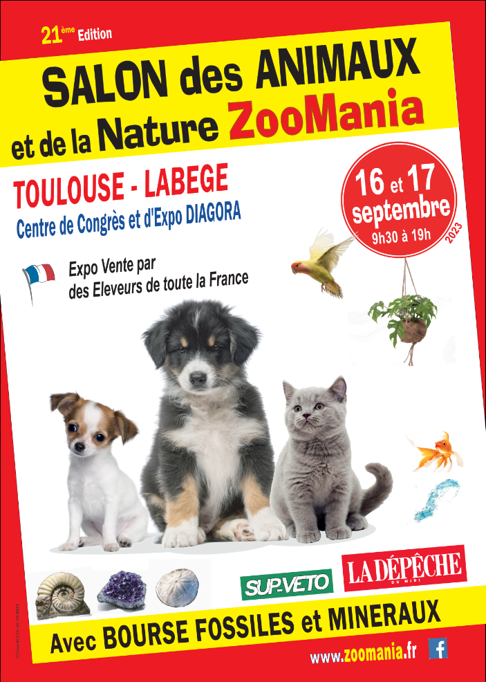Pour sa 21ème édition, ZooMania vous invite à rencontrer votre futur compagnon les 16 et 17 septembre 2023 au Centre de Congrès et d’Exposition DIAGORA de Toulouse-Labège !