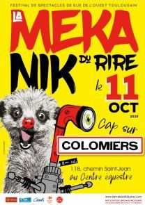 Notre première action est la création de ce festival de rue qui a eu lieu dans l’Ouest Toulousain à Pibrac les 12, 13 et 14 octobre 2108 : La Mekanik du Rire