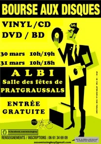 ASSOCIATION ORGANISANT DES BOURSES AUX DISQUES VINYL, CD, DVD & BD AVEC DISQUAIRES INDEPENDANTS. DANS LA QUASI TOTALITE DES CAS, L’ENTREE EST GRATUITE POUR LE PUBLIC. DANS LE CAS OU L’ENTREE EST PAYANTE, LES DROITS SONT COLLECTES DIRECTEM