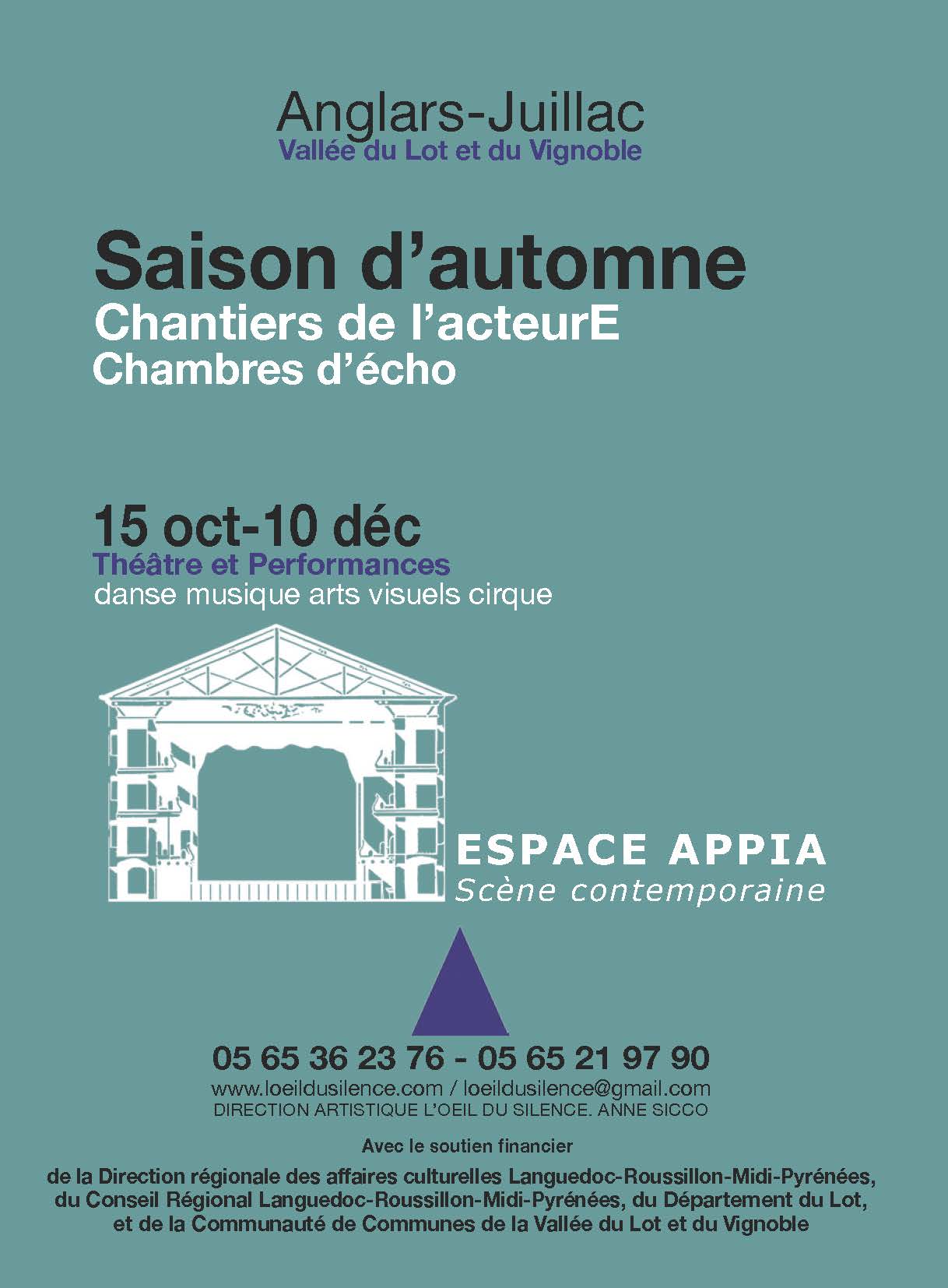 Ancienne friche équestre située à Anglars-Juillac, elle est réhabilitée en 2010 en espace culturel par la Communauté de Communes de la Vallée du Lot et du Vignoble (CCVLV). L’Espace Appia est un lieu à la fois vaste et minimaliste parfaitement équipé pour le théâtre contemporain et les écritures de la scène, au coeur d’un paysage de vignes, de noyers et de plantes.