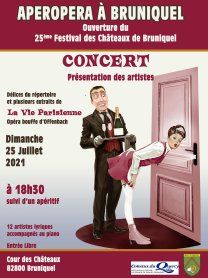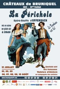 Le festival des Châteaux de Bruniquel est une troupe d’artistes qui chaque année présente sur scène pendant neuf représentations à Bruniquel une oeuvre de Jacques Offenbach adapté par Frank T’hézan