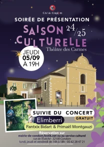 La Mairie de Condom a souhaité, comme chaque année, que la programmation du théâtre des Carmes demeure exigeante en termes de qualité artistique et culturelle, diversifiée.
