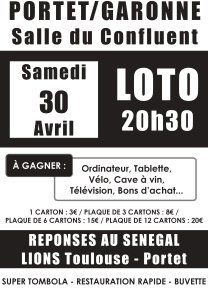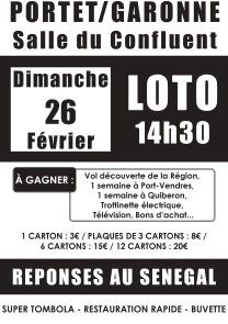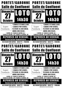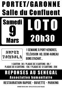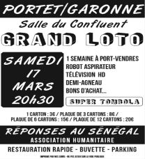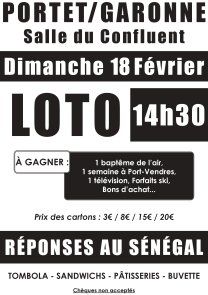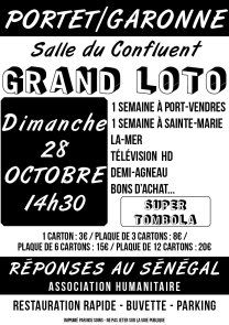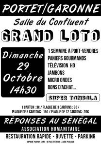 L’association humanitaire « Réponses au Sénégal » organise un grand loto à la salle du Confluent de Portet sur Garonne, le dimanche 24 NOVEMBRE à 14h30, au profit des enfants de l’école de Louly N’Gogom (...)