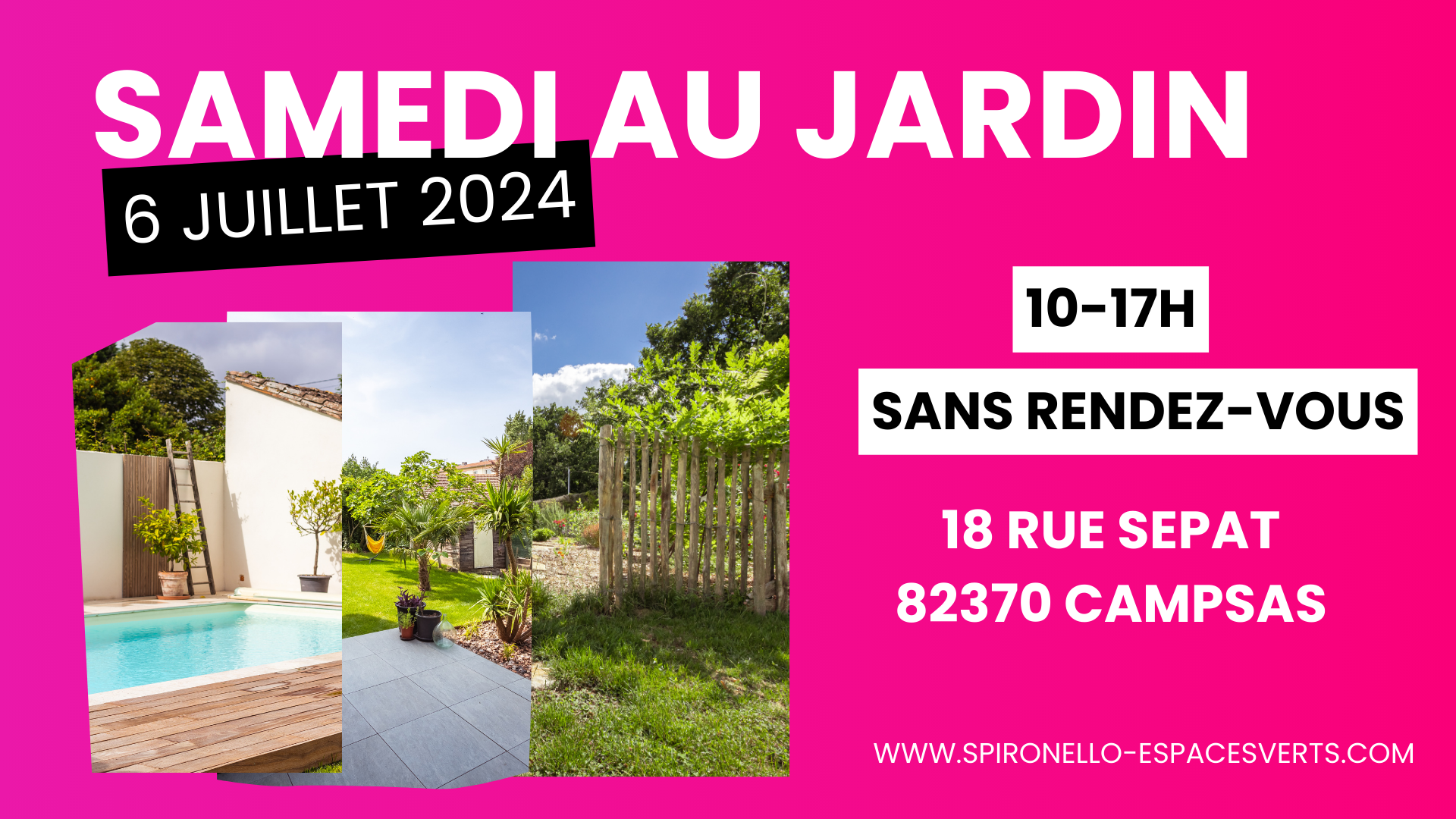 Les paysagistes Spironello Espaces Verts vous convie à l’événement « Samedi au jardin » le samedi 6 juillet 2024 de 10h à 17h, à Campsas, près de Montauban.