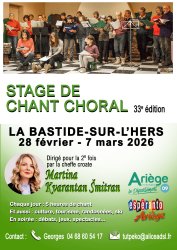 33-e stage de chant choral à La Bastide-sur-l’Hers sous la direction de Martina Kvarantan-Smitran de Belgrade. 5 heures de chant par jour, des visites, des jeux, de la culture...