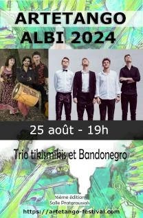 Association qui organise le Festival ARTETANGO ainsi que ARGENTINA FEST à ALBI et d’autres évènements autour DE LA CULTURE ARGENTINE . L’association en outre dispense des cours de musique LATINO-AMERICAINE (folklore des pays d’Amérique du sud, Tango) organise des stages de Bandonéon, et enseigne le tango (danse) toute l’année.
