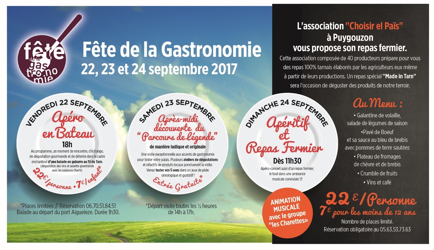 12h00 Repas « Made in Tarn » préparé par Choisir al Païs à Puygouzon dans une ambiance musicale conviviale !!!