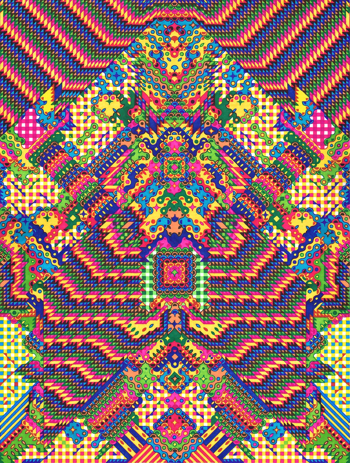 Oeuvres sur papier - Arnaud Loumeau éprouve une indéniable fascination pour les jeux vidéo vintage et les Lego de son enfance... Ses compositions à la fois mathématiques et fluides s’entrechoquent à l’infini .