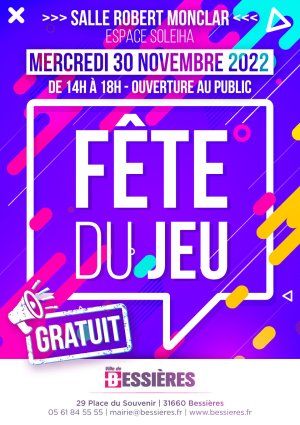 Les animateurs du service enfance de la ville de Bessières organisent la fête du jeu le mercredi 30 novembre de 14 heures à 18 heures à la salle Robert Monclar à Soleiha.