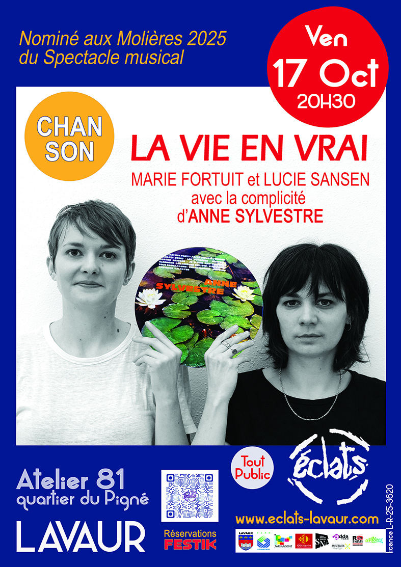 « La vie en vrai » fait résonner l’héritage d’Anne Sylvestre entre humour et gravité, colère et mélancolie, rondes de tendresse toujours, les tonalités des chansons rejaillissent sur ce spectacle sensible qui dit tout bas sa gratitude envers une artiste discrète et éternelle. Un vrai moment intime et émouvant, un instant suspendu au cœur de l’œuvre poétique et politique d’Anne Sylvestre.